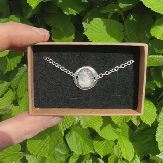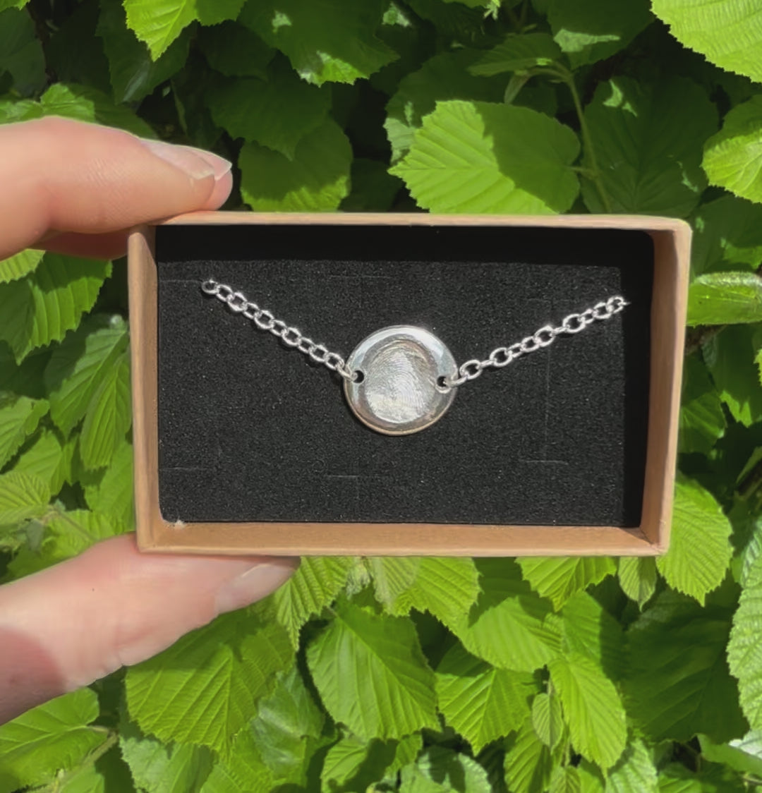 Keep a loved one close, always. Our Personalised Fingerprint Disc Bracelet is a timeless and heartfelt piece, stamped with a real fingerprint for a truly one of a kind treasure. The round charm showcases intricate fingerprint details and is elegantly suspended on a 3mm sterling silver trace chain, offering both durability and delicate beauty.